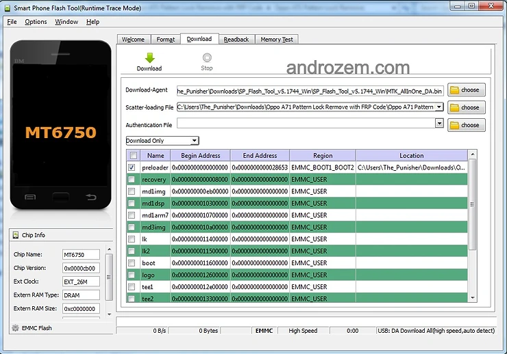 2. Select scatter file from downloaded Oppo A57 FRP and Pattern Unlock Code.